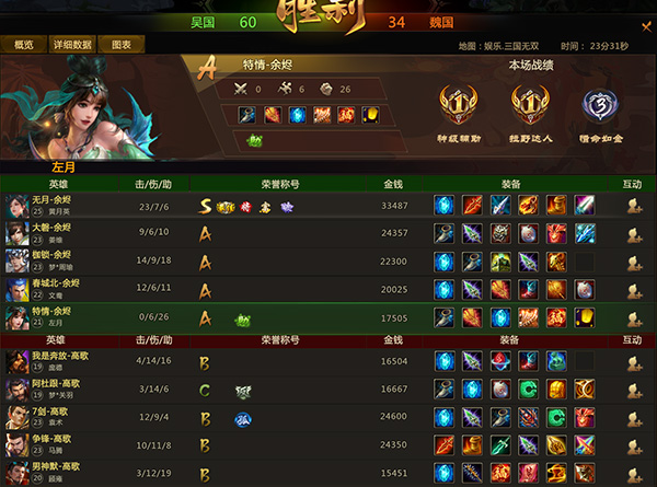 15分钟,吴国文鸯、梦周瑜入侵魏国野区,魏国马腾孤身一人遭到文鸯先手大招,梦周瑜跟进补充伤害帮助文鸯斩杀马腾;同时吴国姜维、左月配合下路合力斩杀魏国梦关羽,吴魏比分42:27,吴国经济领先8K。20分钟,吴国快速封印己方BOSS上古炎魔,黄月英拿下复活和号角。吴国随即吹响号角中路突袭,魏国被迫接团团战不敌,吴国黄月英拿下四杀帮助己方2换5团灭敌方,吴国直逼魏国中路高地,魏国复活后以牺牲三人的代价击杀两人将其逼退,吴国手握复活的黄月英阵亡,此时吴国击杀已达59。22分钟,吴国3人进攻魏国下路高地,魏国马腾、庞德处理兵线被姜维先手大招控住,黄月英跟进补充伤害击杀魏国庞德,余烬击杀达到60取得第二局比赛的胜利。