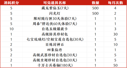 兑换奖励:攒的积分能兑换闪光灯、紫仙玉、限时背包、周泰换装、百炼封神石等众多奖励,且兑换奖励将不定期更换为当前版本热门道具。