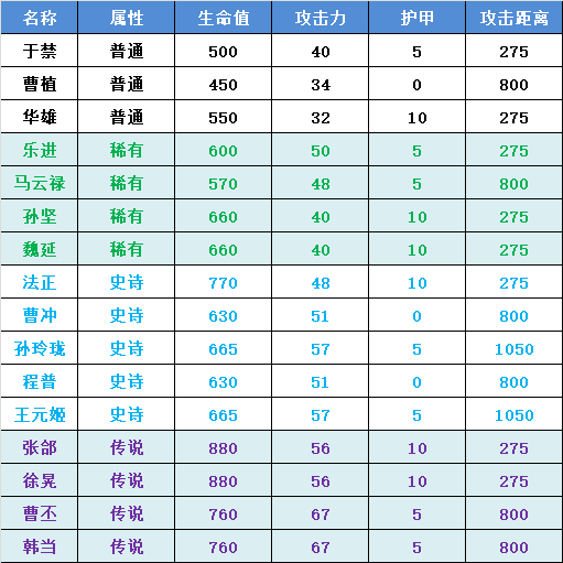 主将会随着官职等级晋升而获得属性提升,新的主将属性如下: