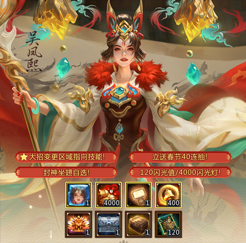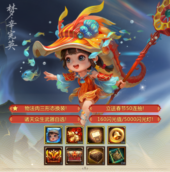 一重礼【超值特惠包】:仙术师能以超值折扣获取新春换装、璇玑福铃(价值1梦币)、时运值(价值10梦币)、闪光灯等。