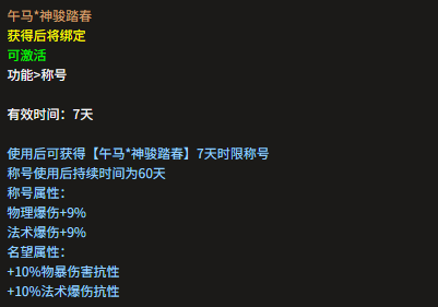 解锁4个扫码包,消耗1时运值兑换午马*神骏踏春称号;消耗300时运值兑换华粹坐翅自选包。
