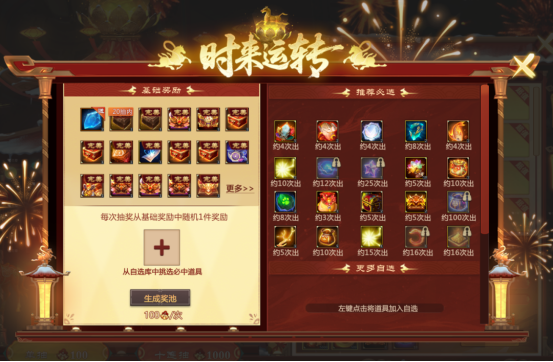 自选奖励,即从时来运转宝库中自选心仪道具放入奖池,抽取约标记的次数后必得该奖励。