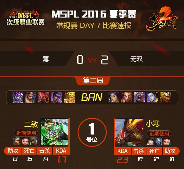 无双在上周刚刚终结了诗月的连胜纪录,又在MSPL第三周首个比赛日向薄再次扔出连败阴影,虽然比赛场次落后于A组第一诗月战队,但是积分榜上却紧追不舍。