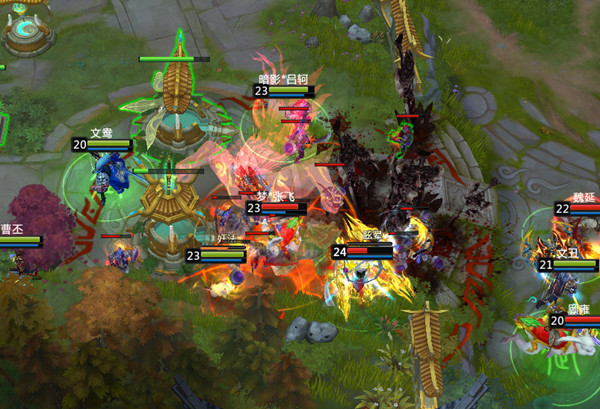 开局2分钟,魏国左月和梦马超在下路集火击杀吴国夏侯渊,左月完成敌将讨伐。9分钟,吴国方抱团摧毁魏国下路一塔。12分钟,吴国方再次抱团在下路击杀落单的魏国乐进和钟会,紧接着吴国夏侯渊利用大招换位击杀魏国左月,此时魏国梦马超等人赶到支援,在魏国梦马超等人的集火下吴国夏侯渊和梦庞统撤离不及被击杀。13分钟,魏国方进攻吴国下路一塔,吴国众人赶到回防后集火击杀魏国左月,魏国乐进开启大招配合梦马超击杀吴国刘协在马腾一技能的控制下被击杀,魏国钟会被吴国夏侯渊控制击杀。19分钟,上古炎魔刷新后被吴国方击杀,马腾获得炎魔之焰及上古号角,此时吴魏比分25:13,吴国经济领先16000。
